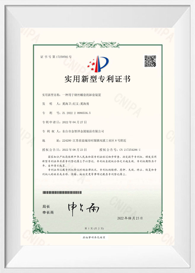 Utility Model Patent Certificate
