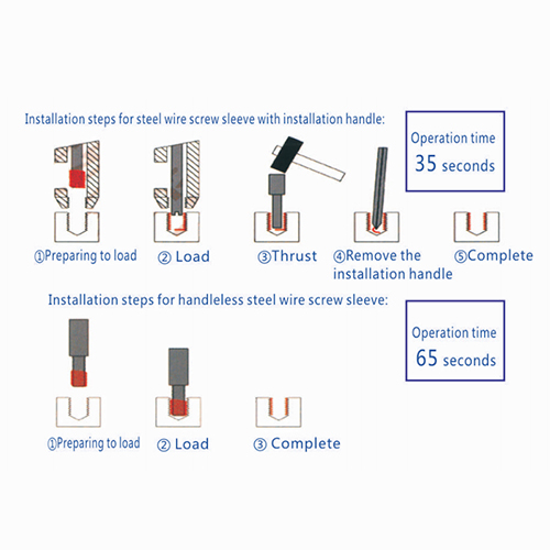1. After the installation of the ordinary tail steel wire screw sleeve is completed, the installation handle needs to be removed. When installing the tail handle, it is easy to pull out the last round of steel wire. When installing the tailless steel wire screw sleeve,becauseThere is no tail handle installed, the tedious process of removing the installation handle with ordinary tail steel wire thread inserts is eliminated. The process saves time and improves efficiency!